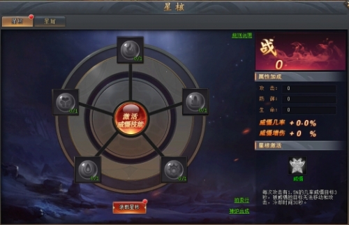 集齐首层星核会激活星核系统的专属威慑技能,之后集齐每一层,威慑技能都会进行升级