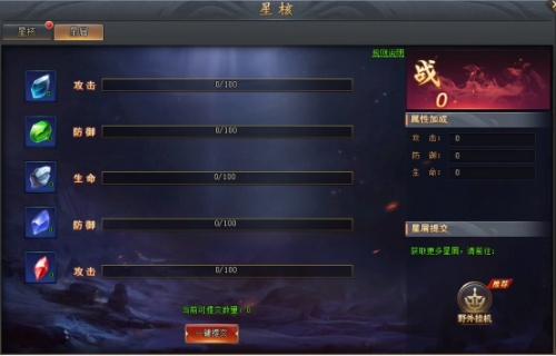 野外挂机刷怪可以获得星屑,通过按钮由本页面提交,也可以获得属性加成。