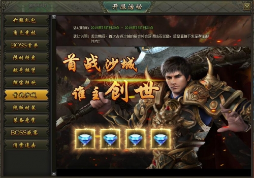 活动内容:开服第5天晚上20:00~21:00系统自动开启攻城战,夺得沙城的帮会将会获得20000钻石的奖励!