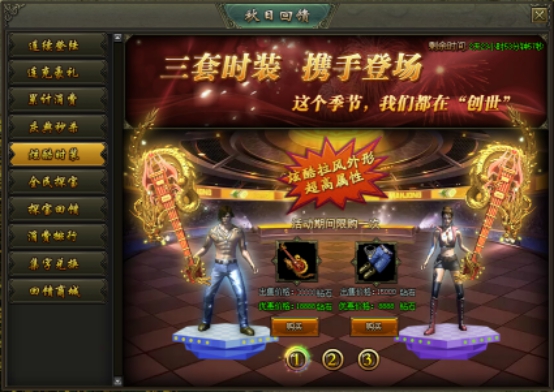 活动说明:活动期间,绝版时装限时出售,炫酷拉风外型、超高属性都在这里!