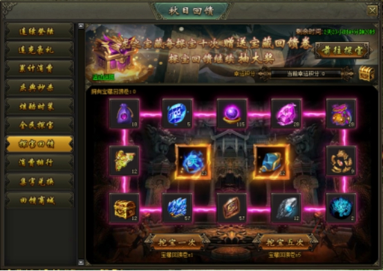 活动说明:活动期间,龙之宝藏每探宝十次赠送一张宝藏回馈卷,可继续在探宝回馈抽大奖
