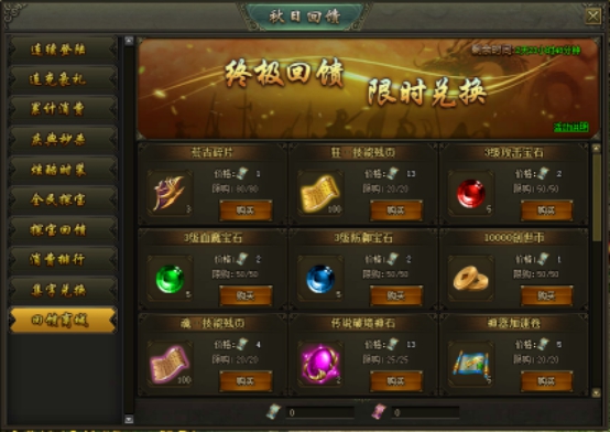 活动说明:活动期间,可使用充值回馈卷和消费回馈卷兑换大量奖励
