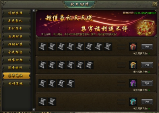 活动说明:活动期间,击杀BOSS有概率掉落字帖,集齐一定数量可兑换奖励!