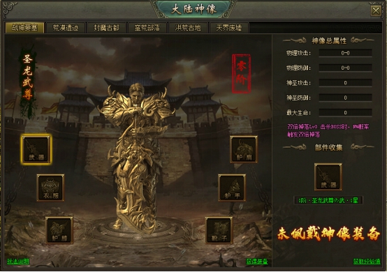 (3)大陆神像穿戴上对应装备之后可增加角色属性