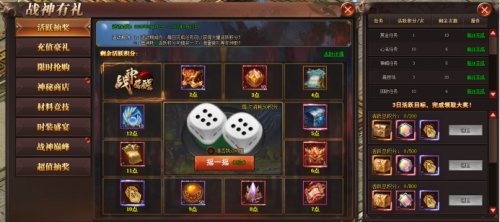 1. 活跃抽奖:活动期间内,完成任务即可获得活跃积分,消耗活跃积分可抽奖,并且当活跃积分达到指定数值时还可额外领取超值大奖。