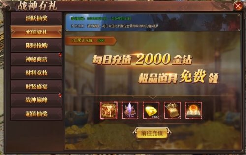 2. 充值豪礼:活动期间,每日充值达标达即可领取极品奖励。