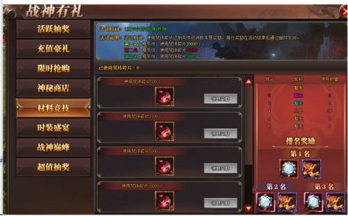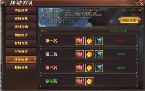 7. 战神巅峰:活动期间,累计消费达到指定额度,即可参与消费排行活动